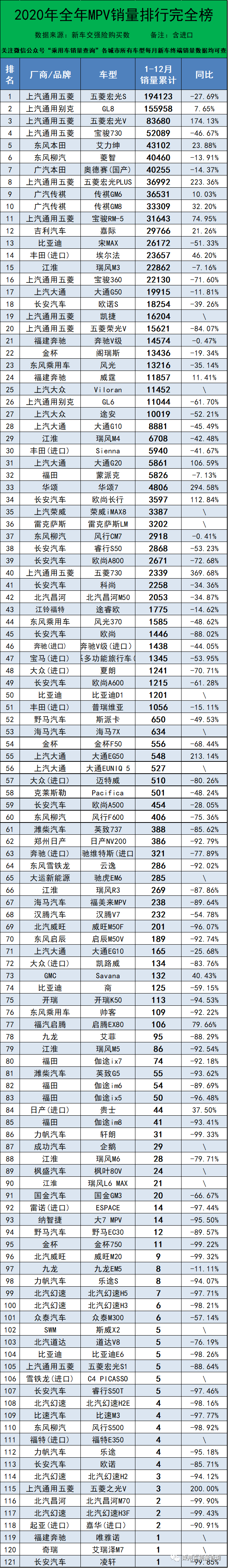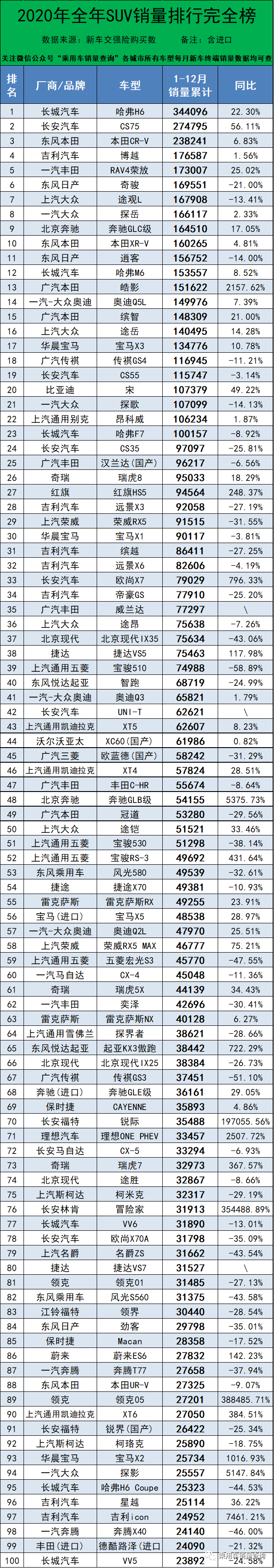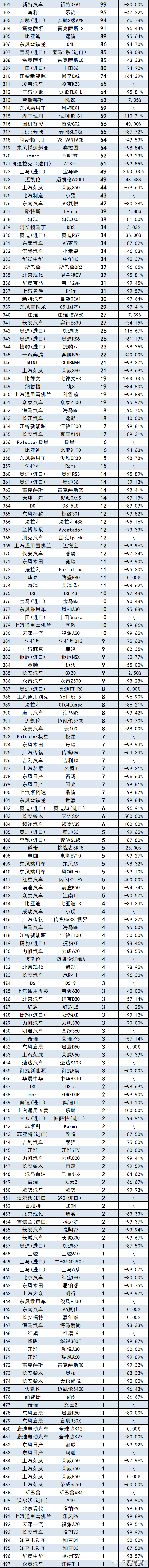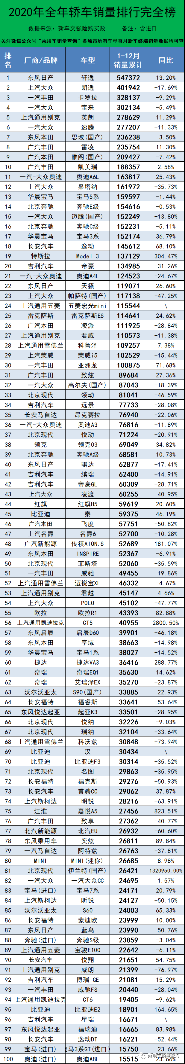 2020年度汽車銷量排行榜,超1203個車型~