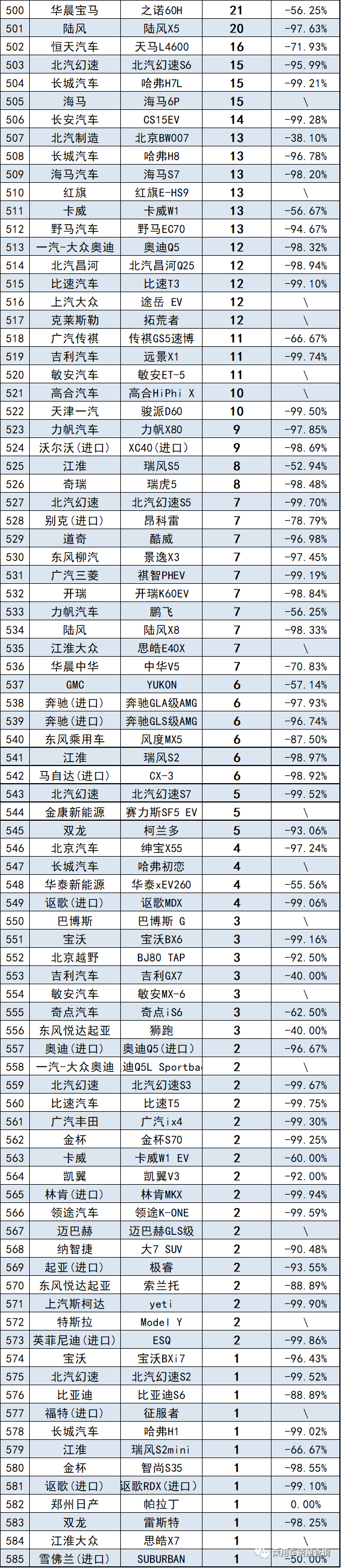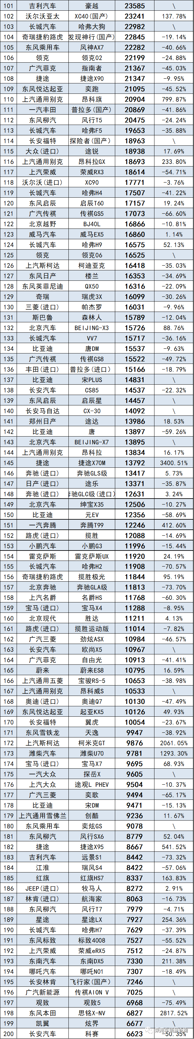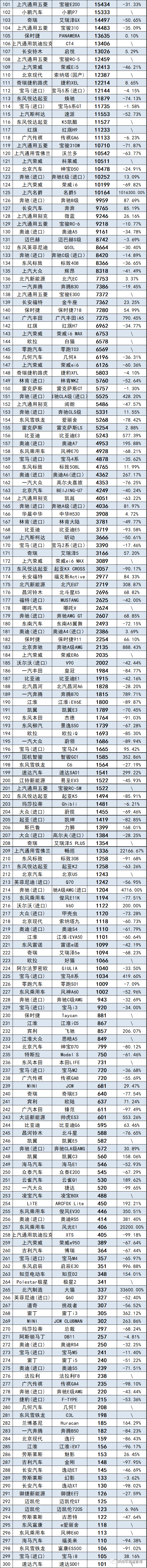 具體車型銷量數(shù)據(jù)如下:
